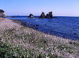 磯遊びに最適な浜。童心に帰って、家族で戯れよう。 春には浜大根の花が、目に穏やかな色を与えてくれる。 |